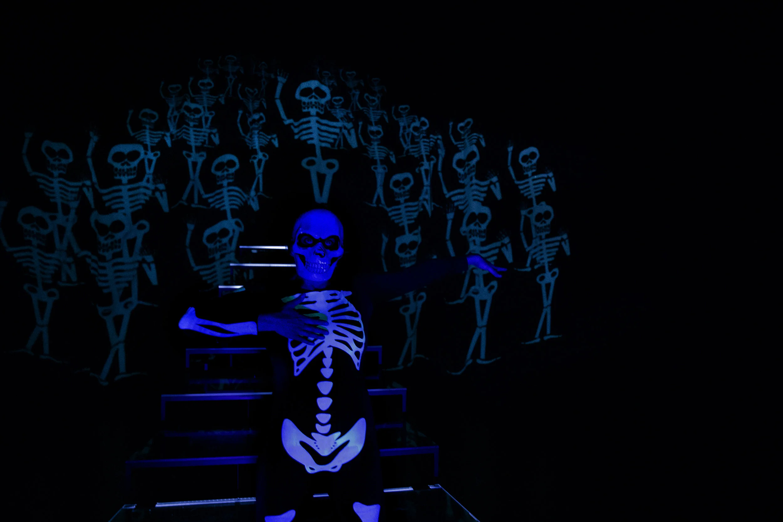 Í Sýningunni dansar Charlotte í beinagrindarbúningi í takt við her beinagrinda sem var varpað á tjald á sviðið.